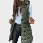 Lourdes - Chaleco acolchado largo sin mangas y con capucha