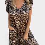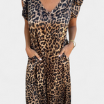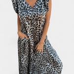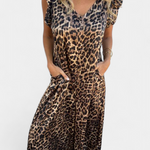 - Detalles: Estampado de leopardo, escote en V, bolsillos frontales