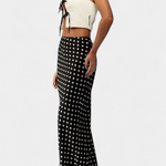 Una mezcla de feminidad refinada y movimiento natural. La falda Olda destaca por su corte estilizado y su estampado de lunares, ideal para un look sofisticado sin esfuerzo.