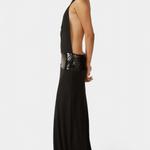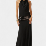 Con un brillo sutil y una silueta cautivadora, el vestido Georgia está hecho para destacar en cada evento elegante. Su escote drapeado halter y la espalda completamente descubierta ofrecen un equilibrio perfecto entre sofisticación y sensualidad, mientras que la banda de lentejuelas aporta un toque de lujo refinado.